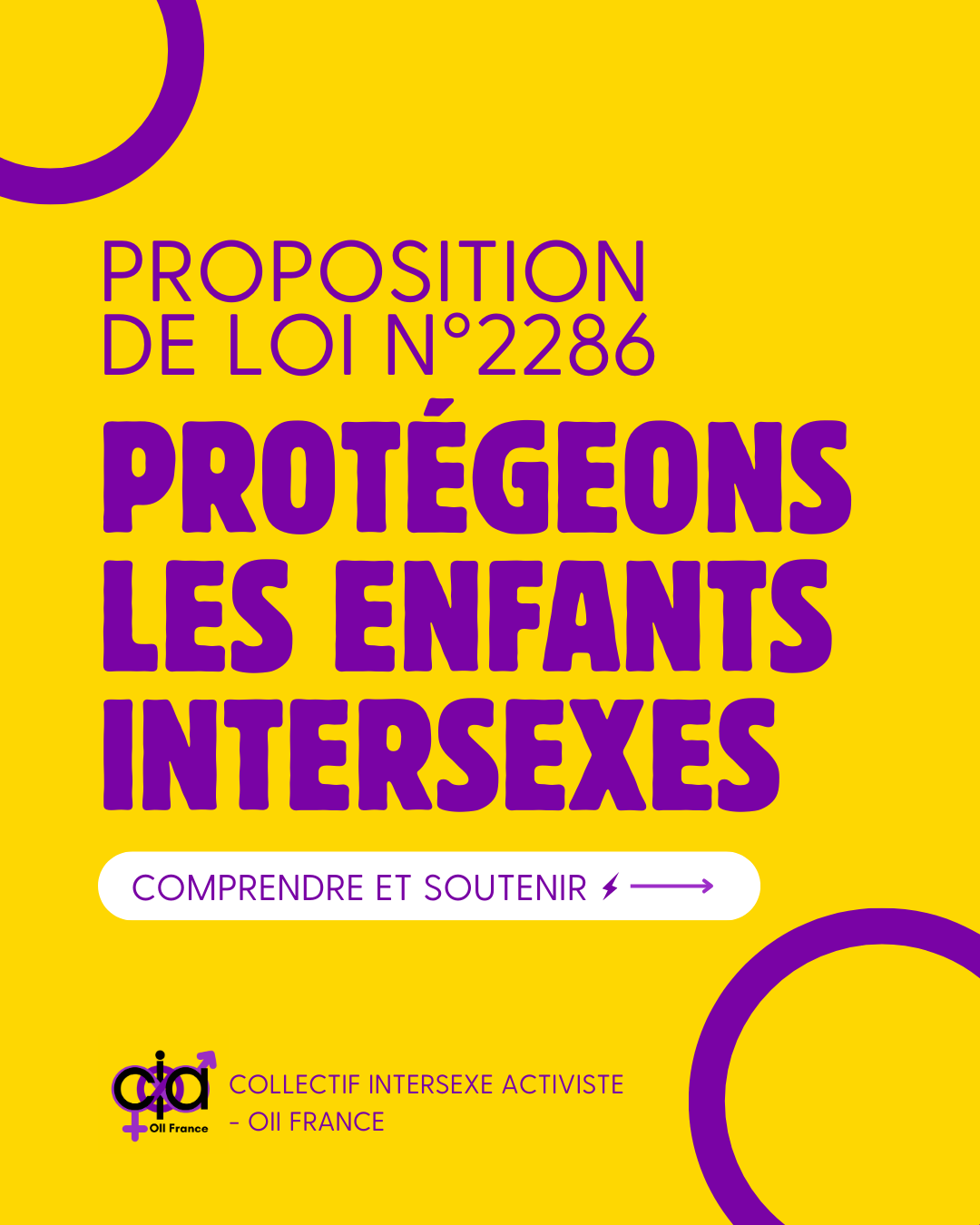 Marches des Fiertés et Jeux Olympiques : le Collectif Intersexe Activiste lance une campagne pour les droits des sportives intersexes ! Lire l'article Programme de formation 2023 du CIA-OII France Lire l'article #IAD2020 – Intersexes : justice, maintenant ! Lire l'article Loi bioéthique – Les mutilations ne sont pas favorables à la santé mentale des enfants intersexes ! Lire l'article Après le rejet des amendements contre les mutilations – Droits intersexes : le combat continue ! Lire l'article Amendements concernant les enfants intersexes : ceux qu’on aime… et les autres Lire l'article Lancement de la campagne pour l’arrêt des mutilations intersexes Lire l'article